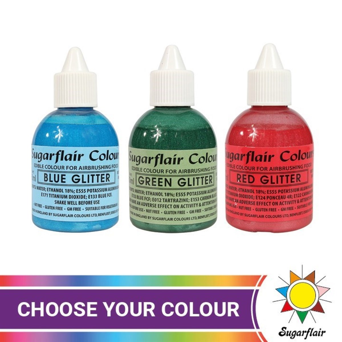 These high quality Glitter Airbrush Colours from Sugarflair can be used to create a number of cake decorating effects. Use to spray moulded shapes for a pretty effect or add directly to royal icing or sugar paste as a luxurious finishing touch.