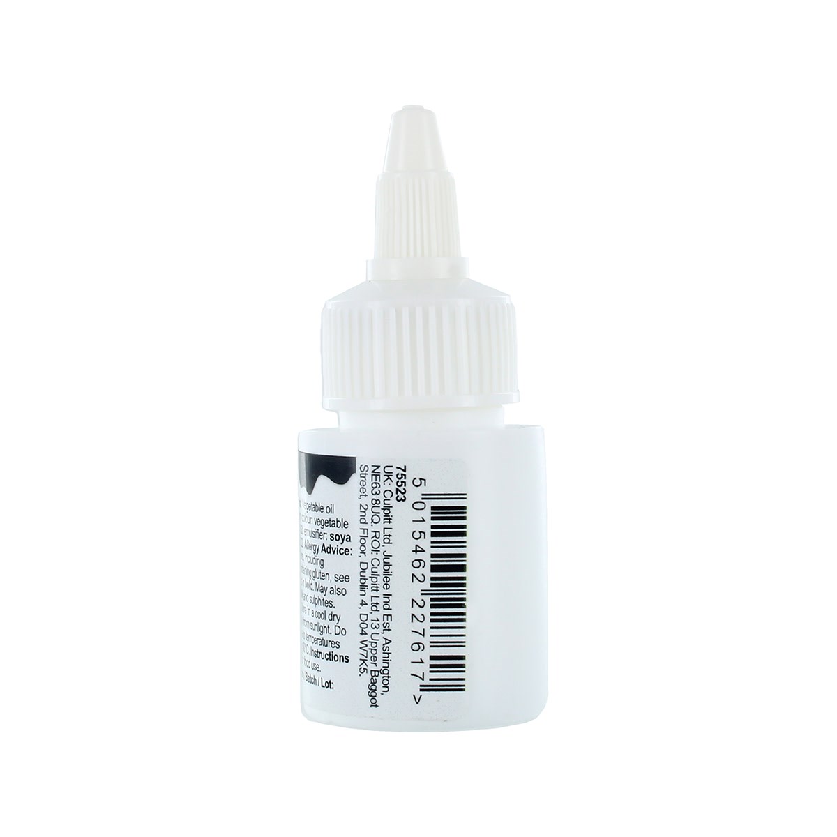 Vegetable oil (sunflower); colour: vegetable carbon E153; emulsifier: SOYA lecithin E322