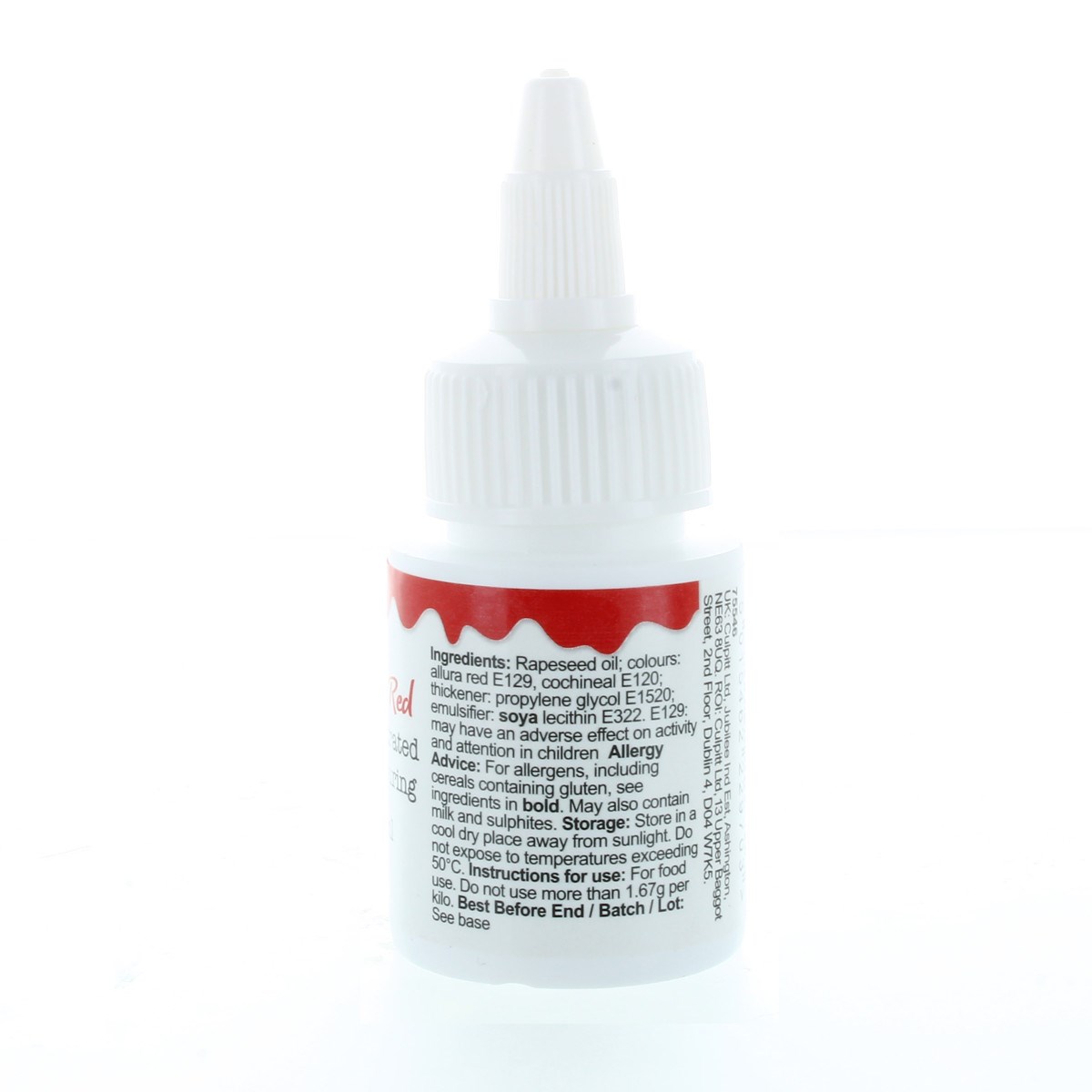 Rapeseed oil; colours: allura red E129, cochineal E120; thickener: propylene glycol E1520; emulsifier: SOYA lecithin E322