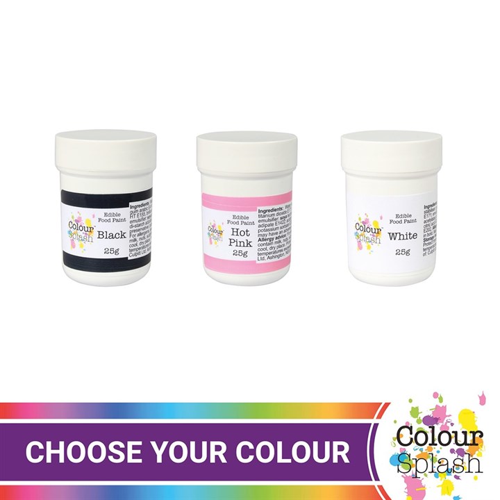 Colour Splash edible paints are a quick and easy way to give your cakes and decorations a touch of colour. Simply use a suitable brush with a minimal amount of paint straight from the container to apply to small areas or use a natural sponge to apply to larger areas. Suitable for use on sugar paste, flower paste and other modelling pastes.