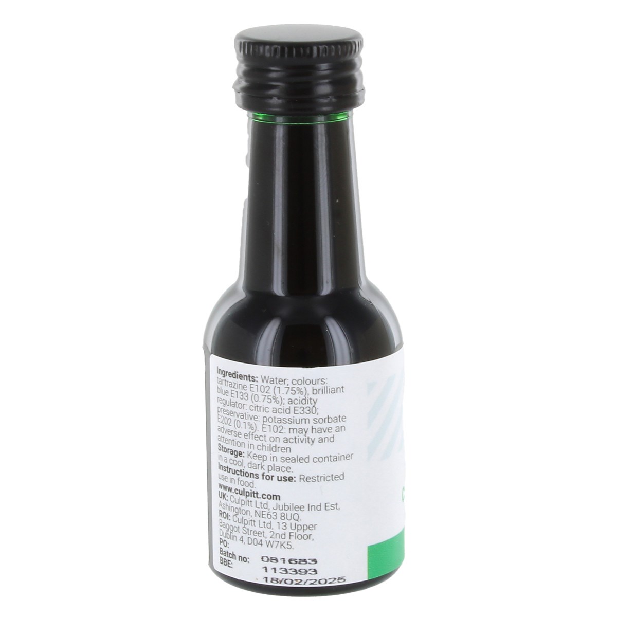 Water; colours: tartrazine E102 (1.75%), brilliant blue E133 (0.75%); acidity regulator: citric acid E330; preservative: potassium sorbate E202 (0.1%)