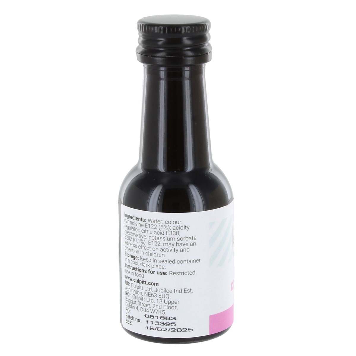 Water; colour: carmoisine E122 (5%); acidity regulator: citric acid E330; preservative: potassium sorbate E202 (0.1%)