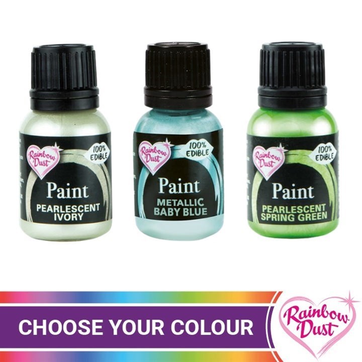 Rainbow Dust Pearl Food Paints are a range of deluxe food colours designed for applying directly onto decorations, sugarpaste, flower and modelling pastes. Can be applied directly with a sponge, brush or airbrush for a stunning pearlescent finish.