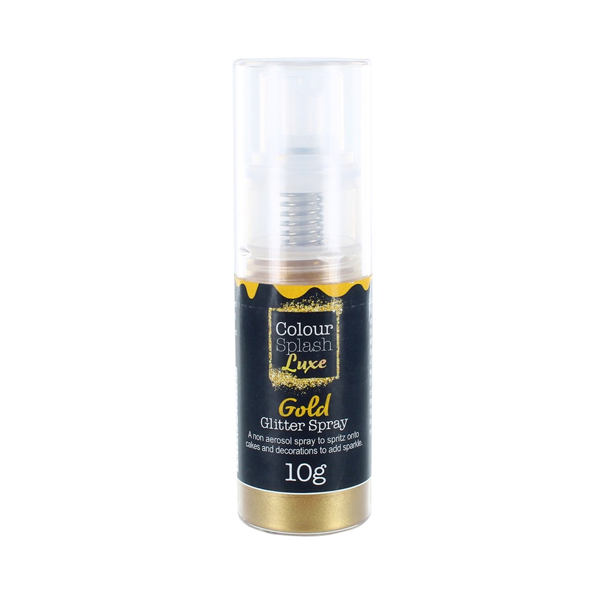Add a spritz of edible metallic glitter with the non aerosol glitter sprays from Colour Splash Luxe. This glitzy shade of gold adds effortless chic to cake decorations to take them from ordinary to extraordinary in an instant.