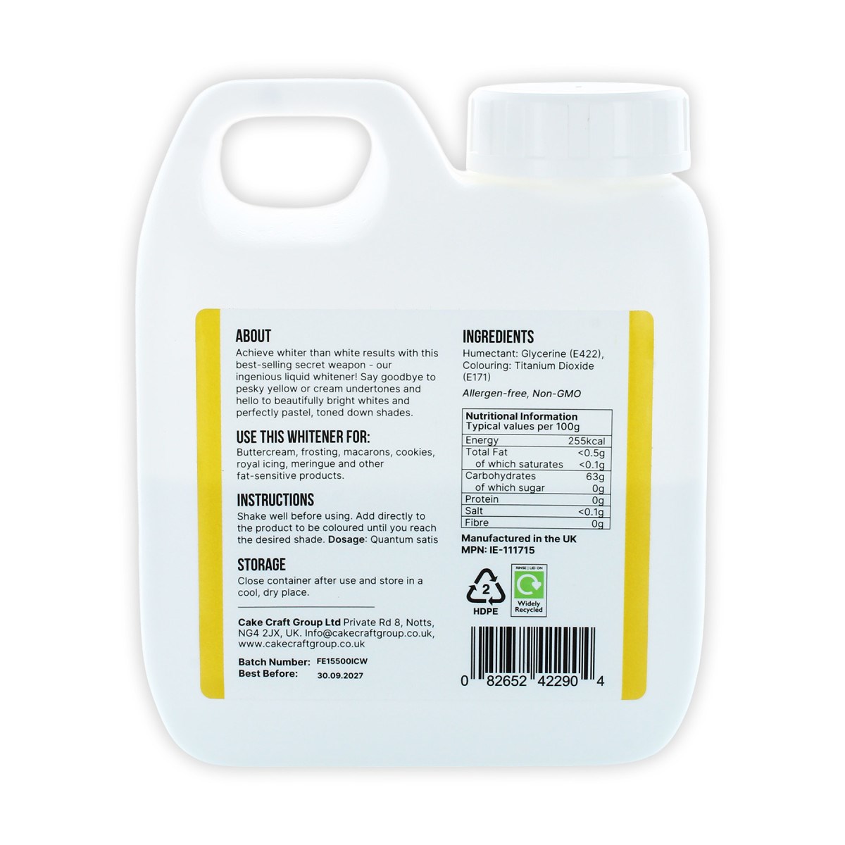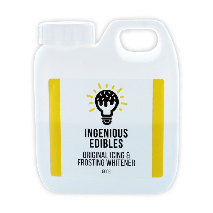 Make that off-white icing a thing of the past with Ingenious Edibles' brand new Icing & Frosting Whitener.Give your royal icing and frosting a dazzling white gleam with this quick and easy to use liquid - it's never been easier!Buttercream tends to have a natural off-white, slightly yellow colour due to the butter used in its recipe, and it's not always the shade we're looking for. This icing and frosting whitener gives your buttercream a clean and crisp white shade in just a few drops. Alternatively, you can use this whitener to soften or tone down the shade of your coloured buttercream, giving you the opportunity to experiment with different shades, letting your cakey creations really stand out from the crowd.Having a bright white buttercream also means you can let your sprinkles and toppings really POP!Why not try marbling effects, monochrome designs, or creating a rainbow of different pastel colours? The possibilities are endless!