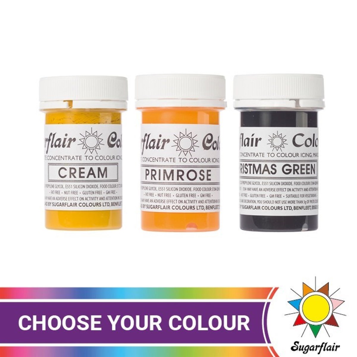 Sugarflair Tantranil paste is very similar to their other paste colours however these products do not contain the ingredient Tartrazine. Ideal for colouring all types of icing. Like all Sugarflair colours, they are very strong and will deepen on drying. Use sparingly until you achieve the desired shade. Each pot contains 25g