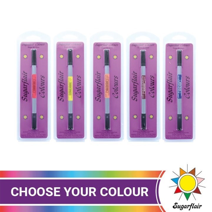 Add personalised designs to your cakes and decorations with Sugarflair's range of Edible Sugar Art pens. They can be applied directly to sugarpaste, marzipan, royal icing or any other smooth, dry surface. Perfect for writing and drawing your own messages and designs, this pen is easy to use and makes a great time saver.
