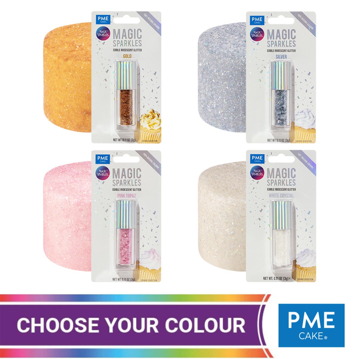 PME Magic Sparkles will add an immediate glittery impact to your sweet treats as the crystal flakes have a jewel like prismatic finish.