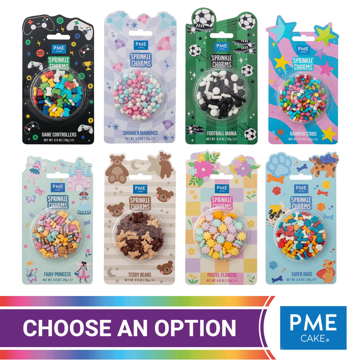 Have fun with these small playful packs of PME Sprinkle Charms. Choose from a variety of themes to add instant character to cakes, cupcakes, desserts, donuts .... whatever the treat! Pick and place a little or a lot of these edible charms.