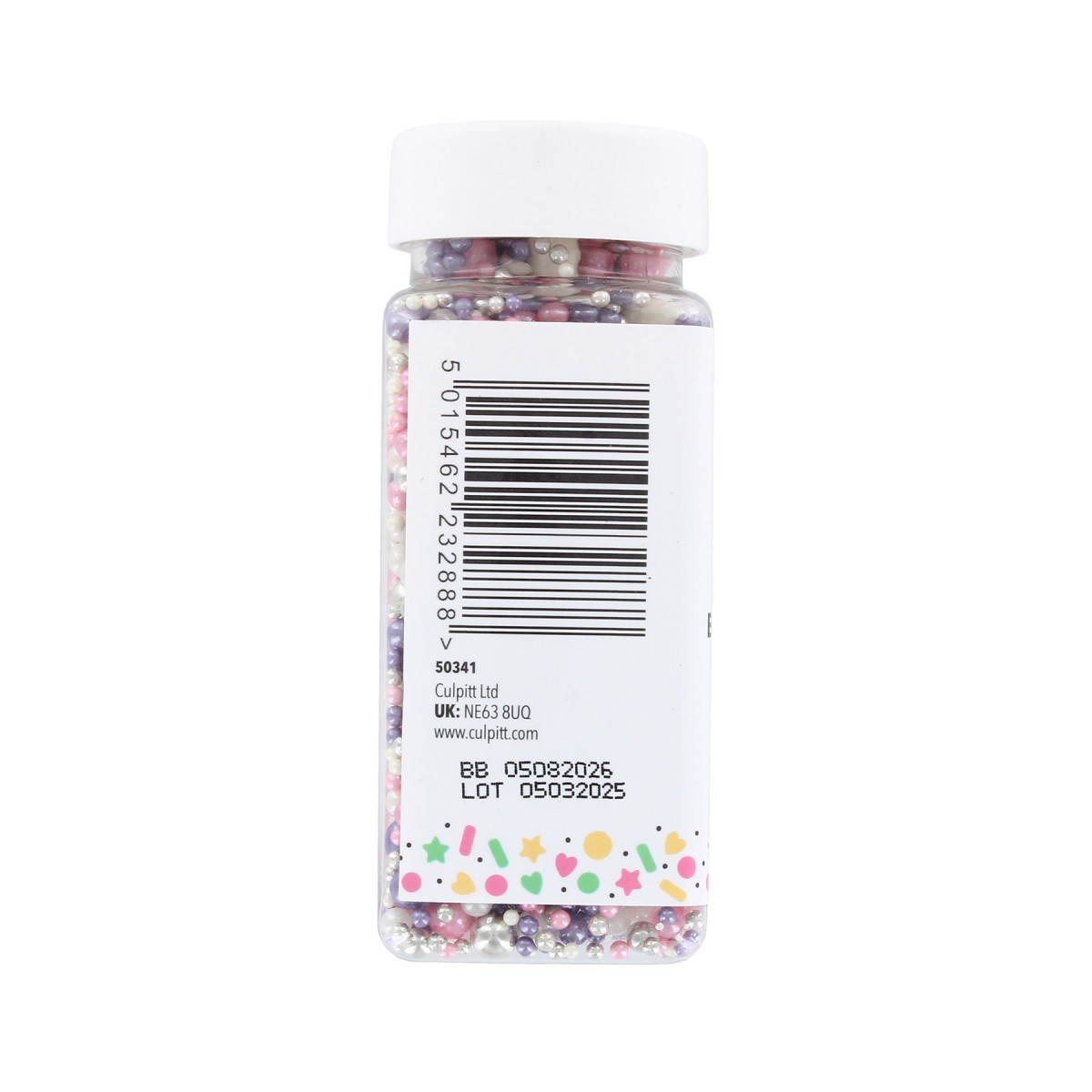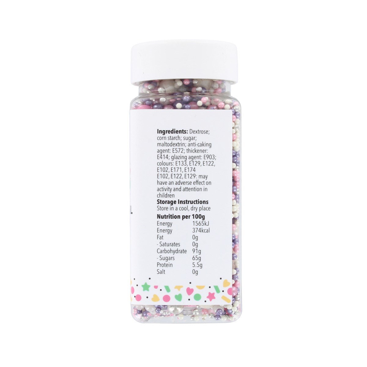 Dextrose; corn starch; sugar; maltodextrin; anti-caking agent: E572; thickener: E414; glazing agent: E903; colours: E133, E129, E122, E102, E171, E174