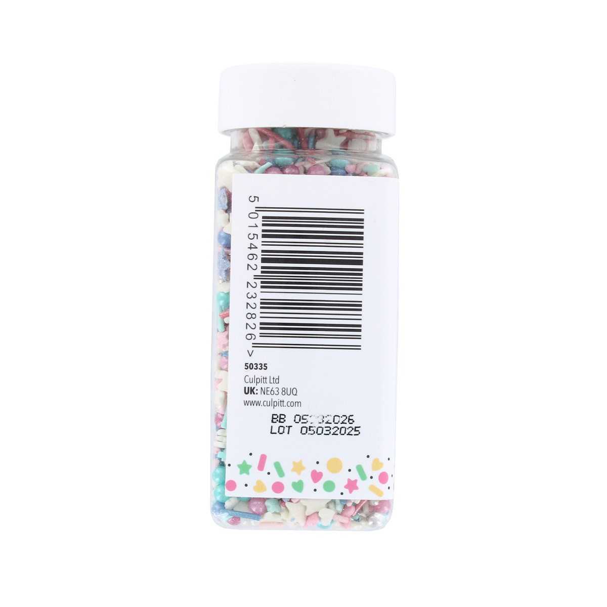 Dextrose; corn starch; sugar; maltodextrin; anti-caking agent: E572; emulsifier E322 (SOYA); palm kernel oil; thickener: E414; glazing agents: E903, E904; colours: E133, E129, E122, E102, E171, E174