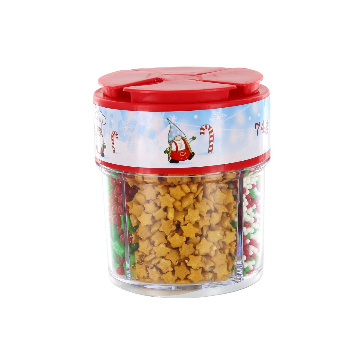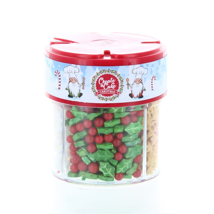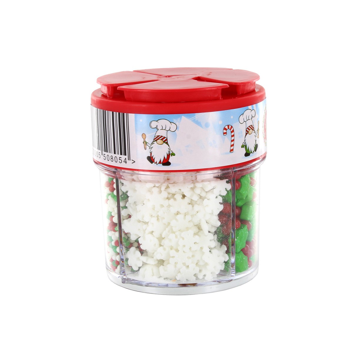 Sugar; corn starch; dextrose; thickeners: E1442, E414, E415; palm kernel oil; dextrin; glazing agents: E904, E903; flavouring; anti-caking agent: E470b; colours: E172, E160a, E120, E100, E133.