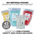 • Choose from over 50 different sprinkles options including edible strands, confetti, pearls, rods and shapes