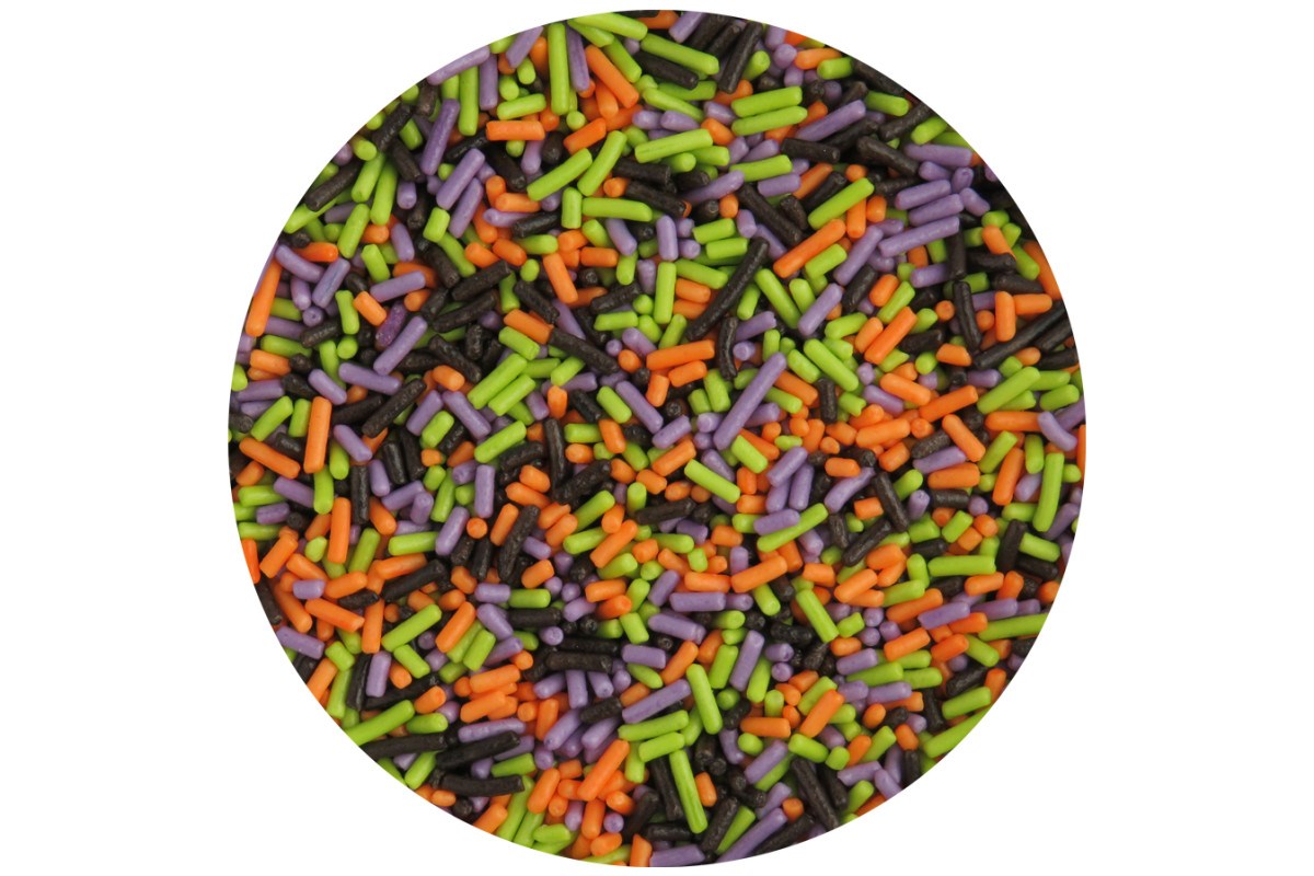 Icing sugar (sugar, starch); maize starch; palm fat; water; fat reduced cocoa powder; emulsifier: rapeseed lecithin; colours: E102, E110, E122, E124, E132, E151; glazing agents: shellac, acacia gum, sugar.