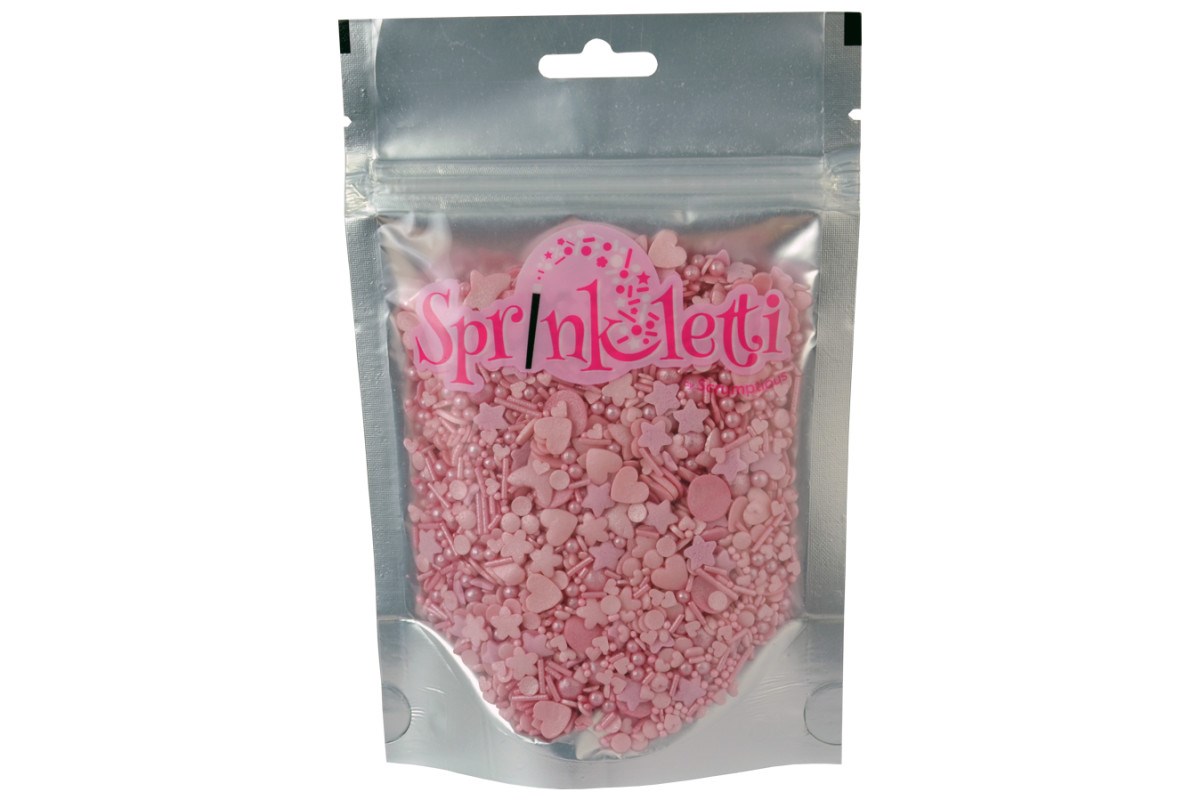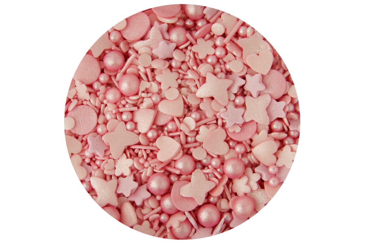 Sugar, dextrose, glucose syrup, WHEAT starch, potato starch, sunflower oil, coconut oil, rice flour. Colours: E120, E171. Glazing Agent: shellac, beeswax.