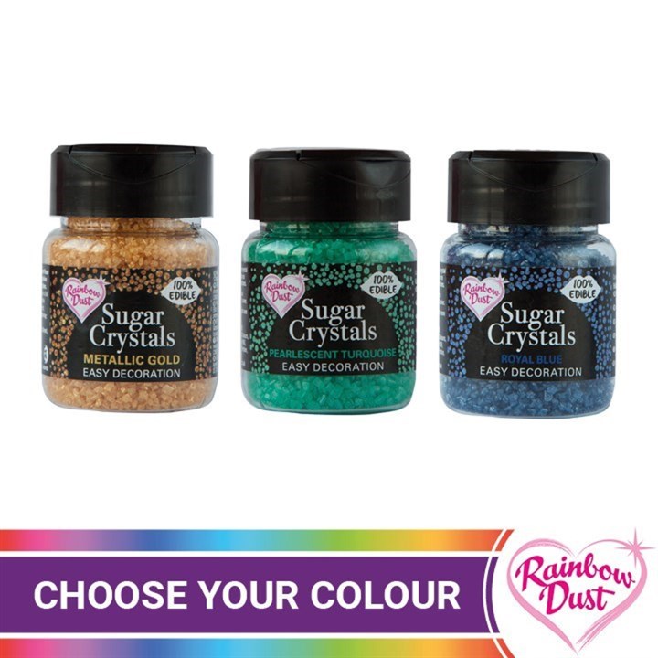 Rainbow Dust's Sugar Crystals come in a flapper-cap style containers for you to shake, sprinkle and simply have as much fun as possible with. A great finish for cakes, desserts, cupcakes and much more.