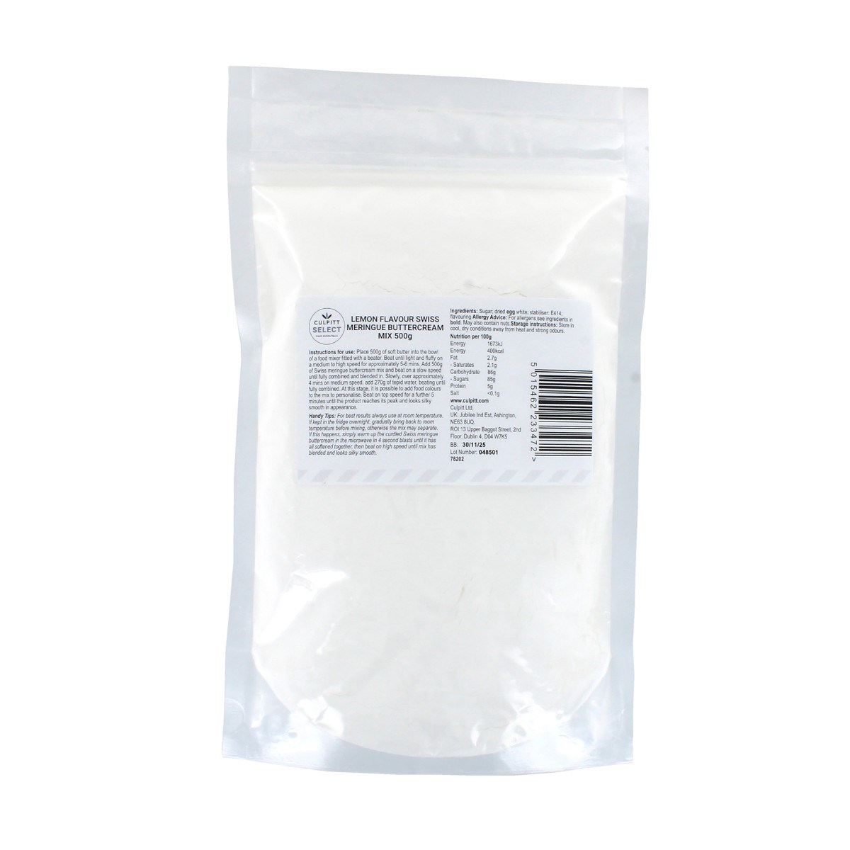 Culpitt Select Swiss Meringue Buttercream Mix is made in the UK from high quality ingredients to produce a light and fluffy textured buttercream with a lemon flavour. This mix is the perfect blend of ingredients to help save time spent on decorating.
