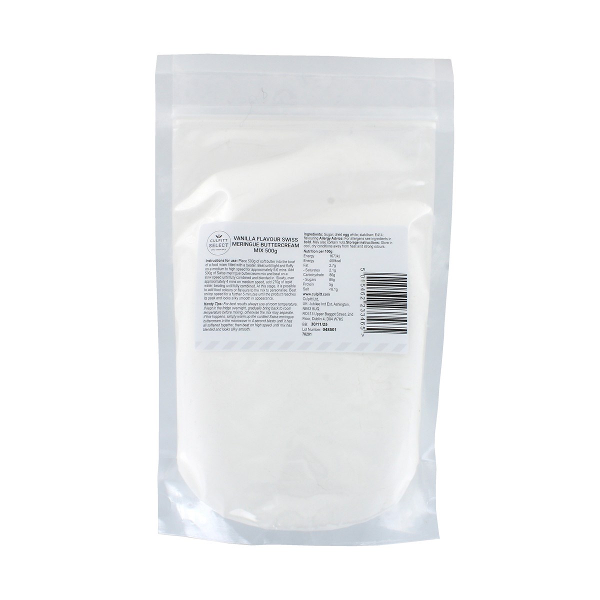 Culpitt Select Swiss Meringue Buttercream Mix is made in the UK from high quality ingredients to produce a light and fluffy textured buttercream with a vanilla flavour. This mix is the perfect blend of ingredients to help save time spent on decorating.