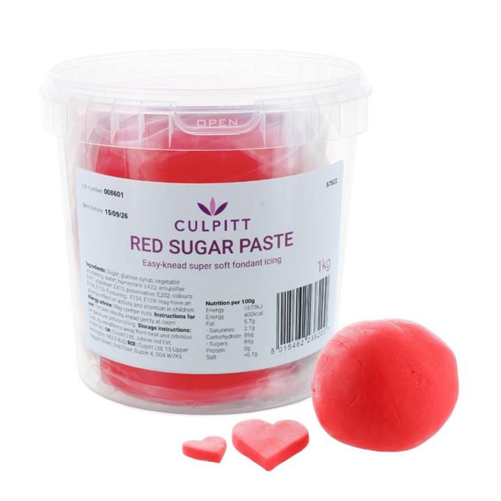The red sugar paste is available in a 1kg resealable tub which means no waste for leftover paste.
