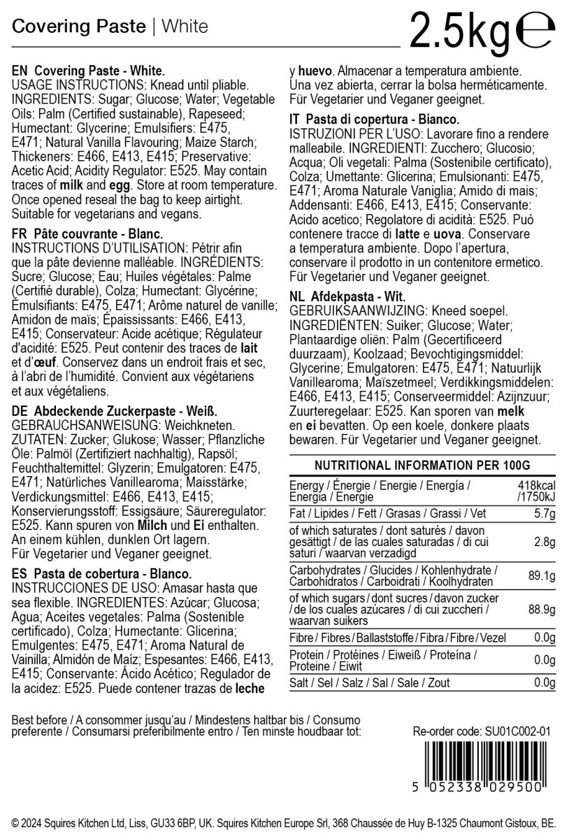 Sugar; glucose syrup; rapeseed oil; palm oil; glycerine; emulsifiers: E471, E475; flavouring; maize starch; thickeners: E466, E413, E415; preservative: E260; aciditity regulator: E525