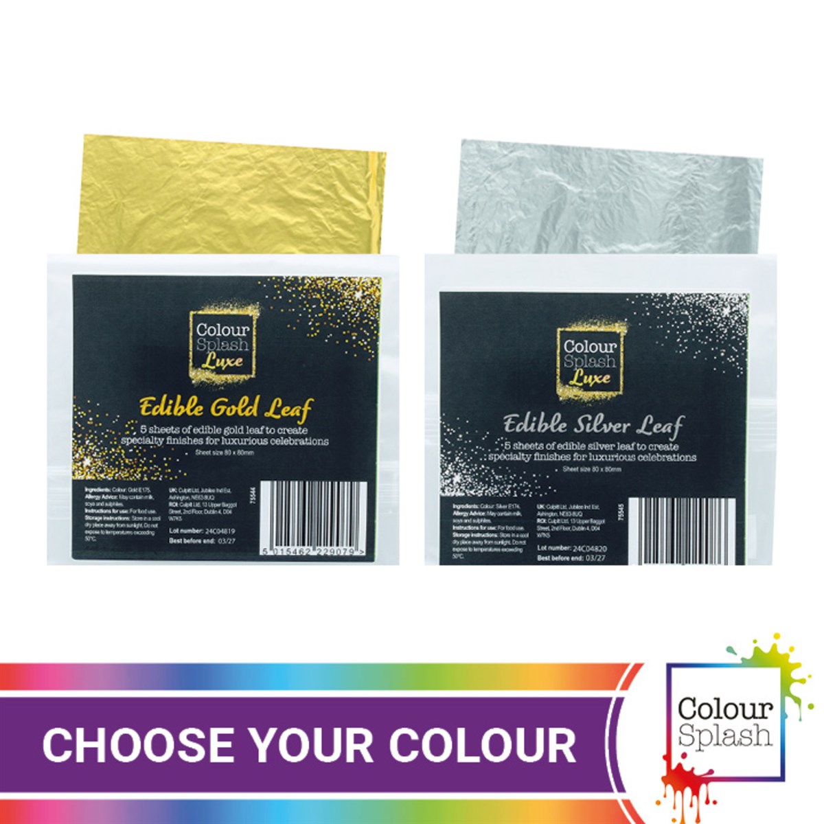 Add a touch of class and sophistication to special occasion bakes with Gold or Silver Metallic Leaf sheets from Colour Splash Luxe.