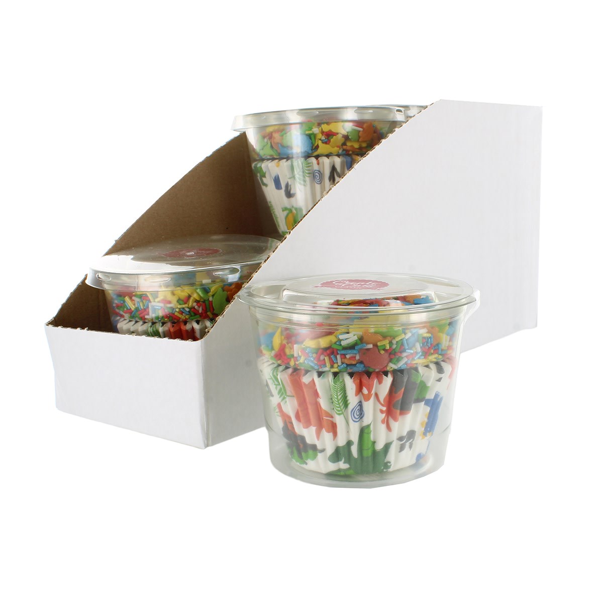 Sugar; coconut oil; glucose syrup; potato starch; sunflower oil; rice flour; icing sugar (sugar, starch); maize starch; palm fat; water; emulsifier: E322; colours: E101, E120, E129, E133, E171; glazing agents: E901, E904, E414